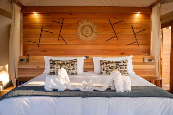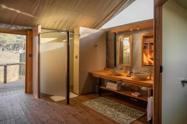 Each spacious tent features elegant décor, modern amenities, and a private veranda overlooking the surrounding wildern...