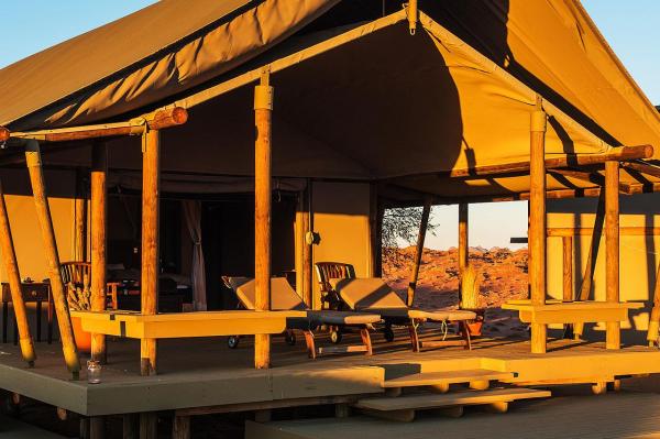 Each tent is elegantly designed with natural materials, blending harmoniously with the surrounding landscape and providing a comfortable retreat after a day of exploring the unique dunes and wildlife of the reserve. The camp operates on eco-friendly principles, ensuring a minimal impact on the environment while still offering top-notch amenities and service.