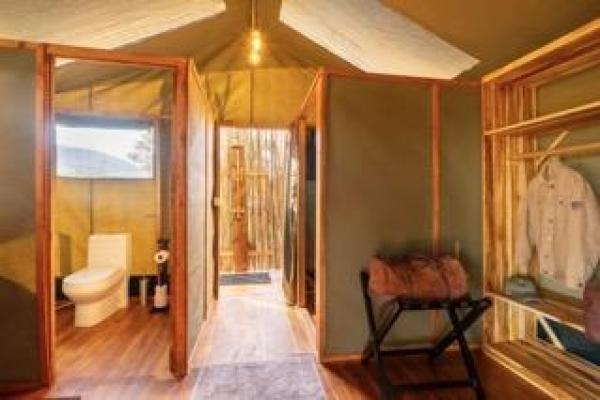 With just six comfortable tents, including a family tent, we offer an intimate and personalized experience. Each spacious 60 m² en-suite tent sits on a raised platform and features plush 7×7 ft beds (or twin/triple setup), high-quality mattresses, and both indoor and outdoor showers with high-pressu...