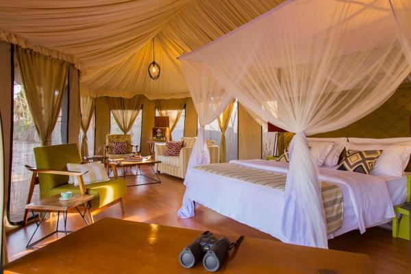Each tented room at Ehlane Plains Camp is beautifully appointed with modern ...